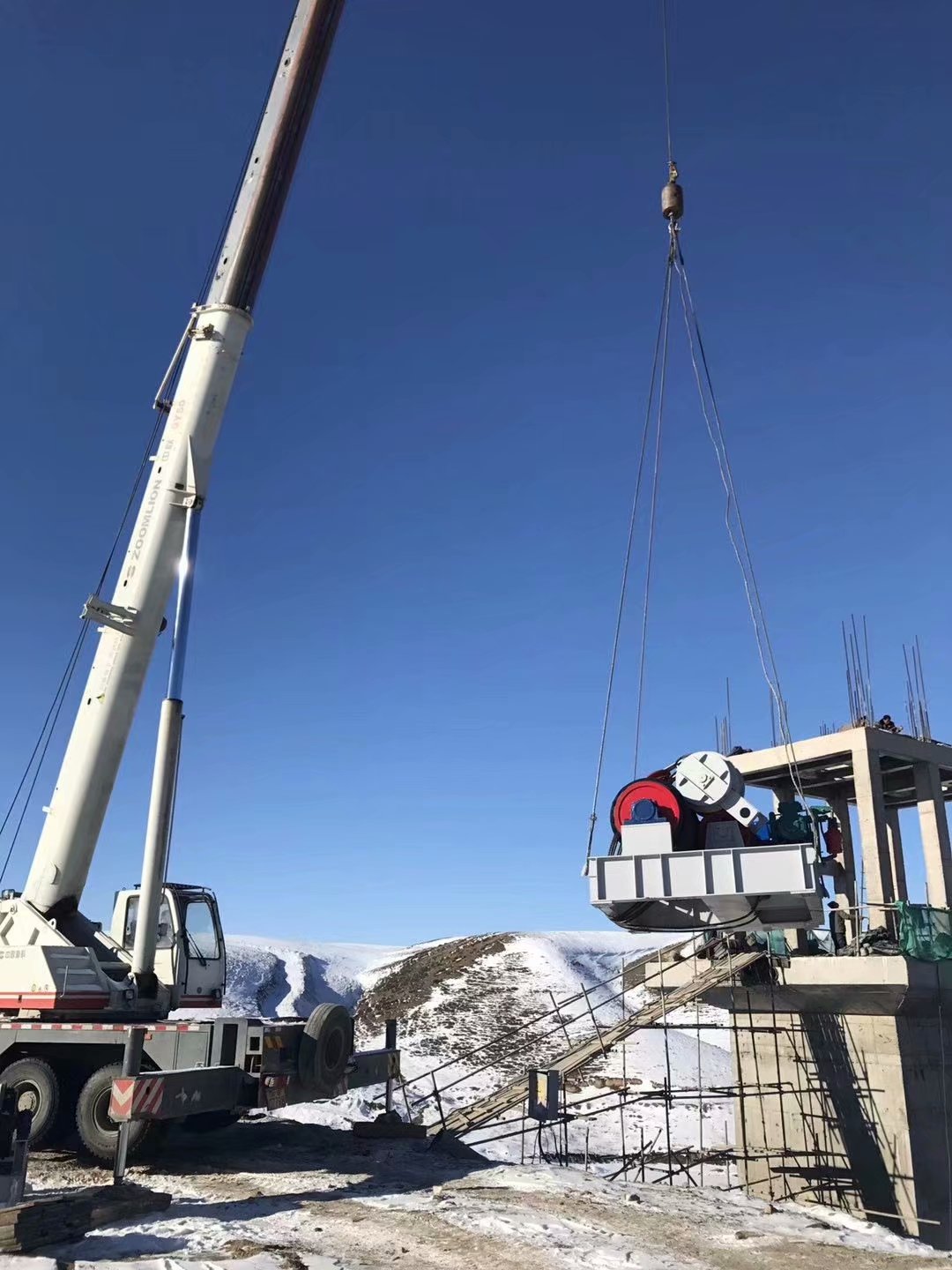 1、安裝時底座地基應牢固平整,留有底腳螺絲的位置,啟閉機到位后,找平澆灌成型。